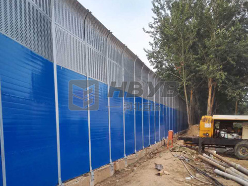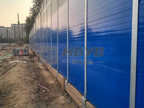 如下图,为我公司在北京某建筑工地安装的降噪声屏障现场: