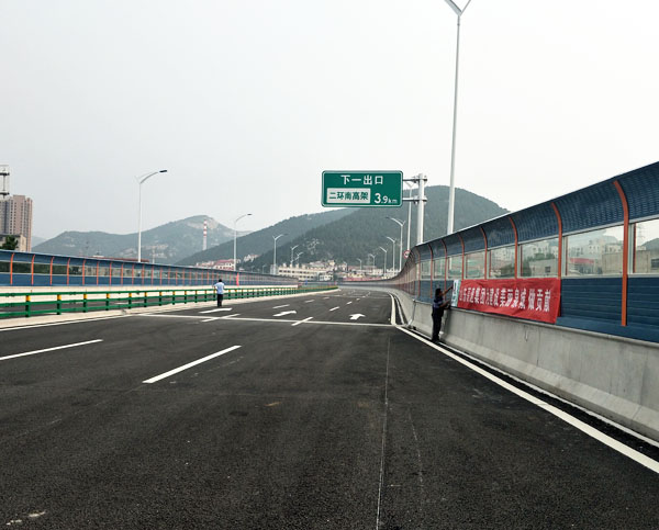 如图所示案例为:济南市绕城高速公路济南连接线声屏障工程、济南市燕山立交桥声屏障工程