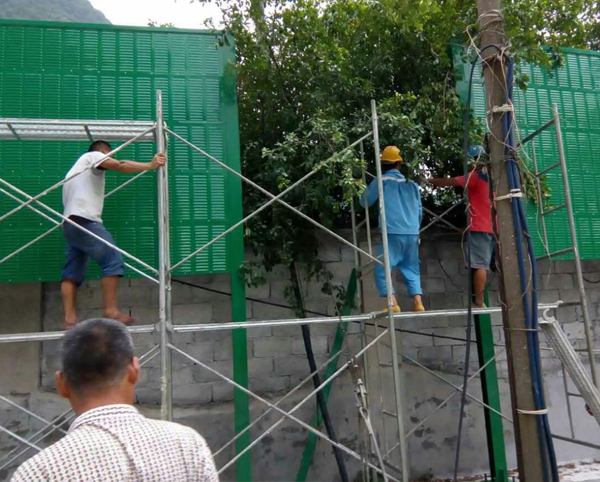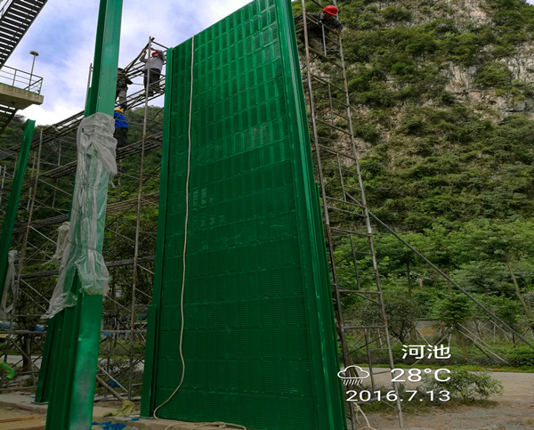 如图所示案例为:广西河池国投鱼峰水泥厂降噪声屏障工程